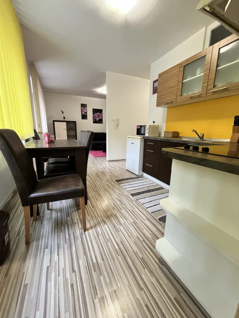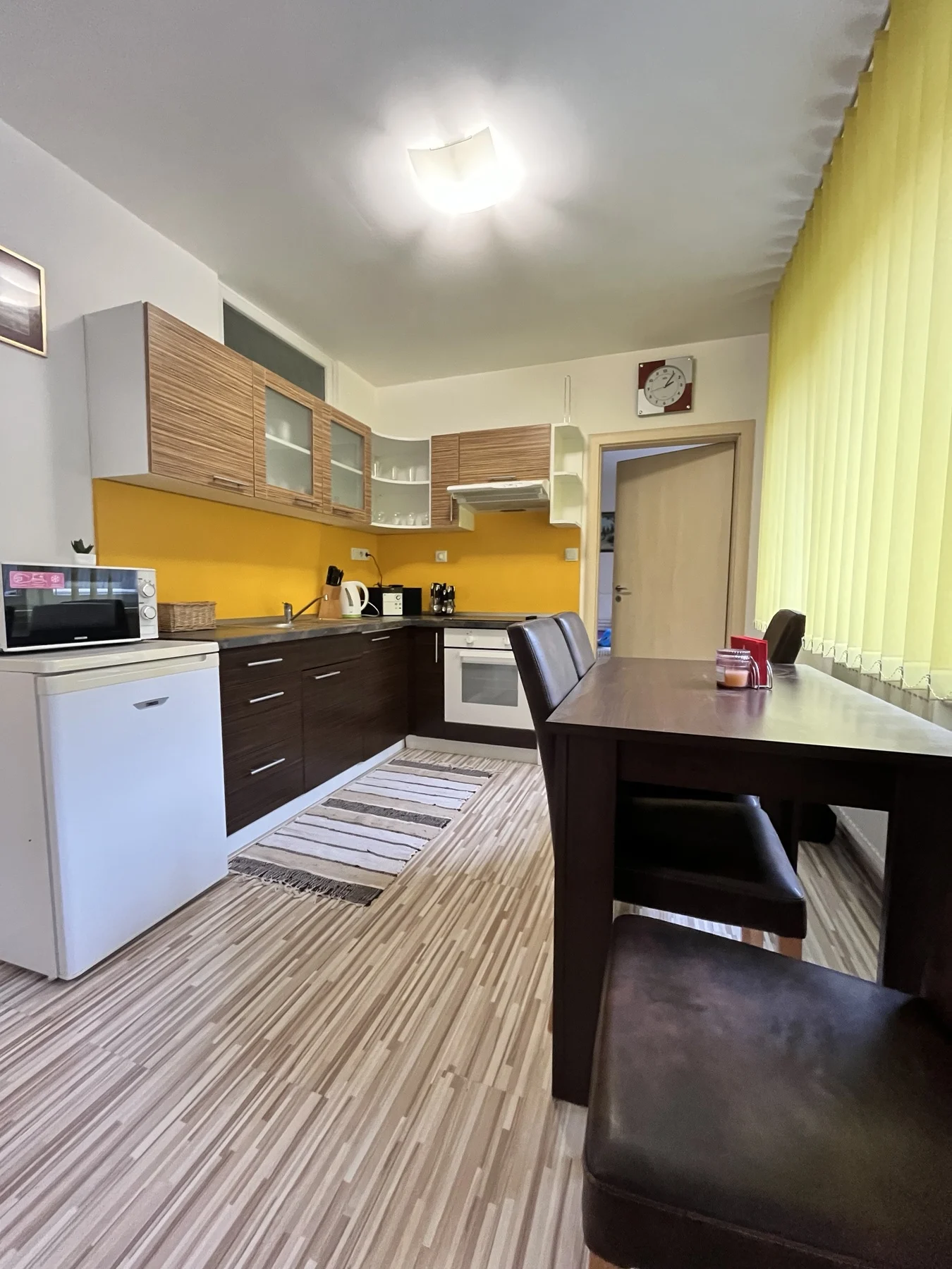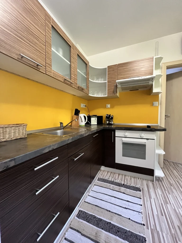 Byt je zariadený. K dispozícii je plne vybavená kuchyňa – chladnička, sporák, mikrovlnná rúra.